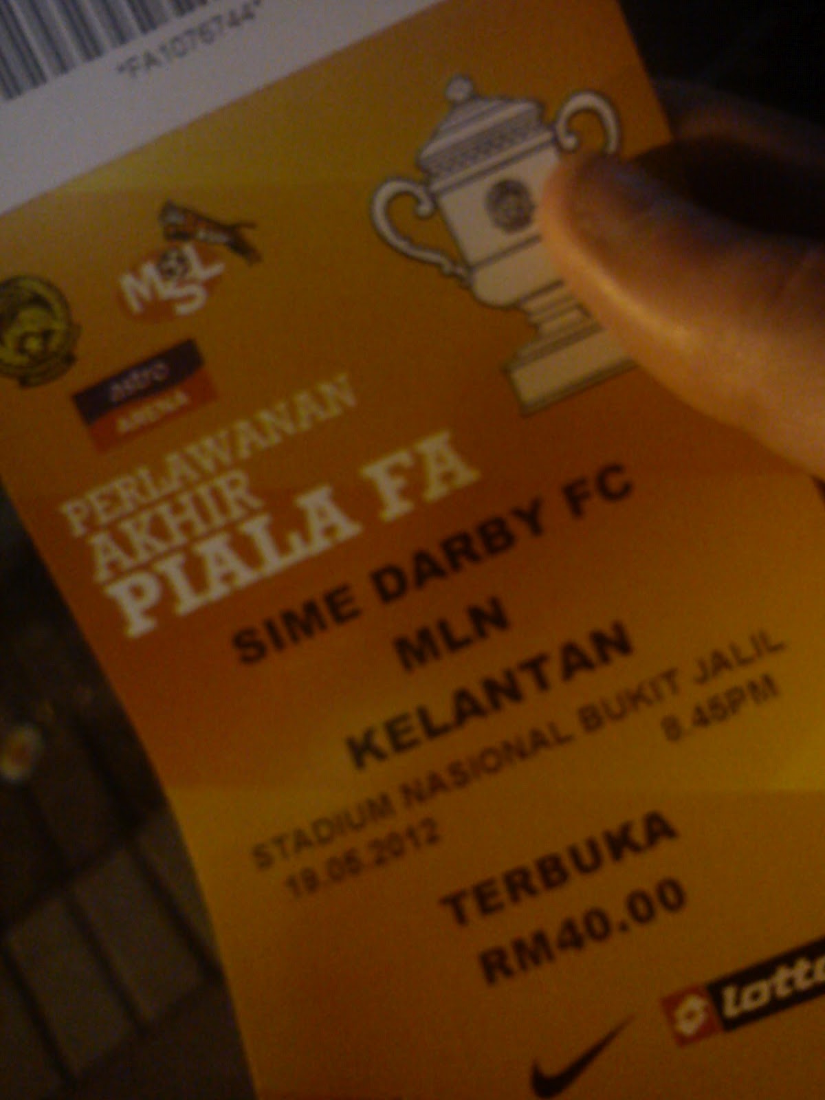 After finding the hotel I made my way to Bukit Jalil (the national sports stadium near KL that hosted the 1998 commonwealth games. I went there to watch the Malaysian FA Cup final between Kelantan (a team named representing the state of the same name) and Sime Darby (the underdogs).